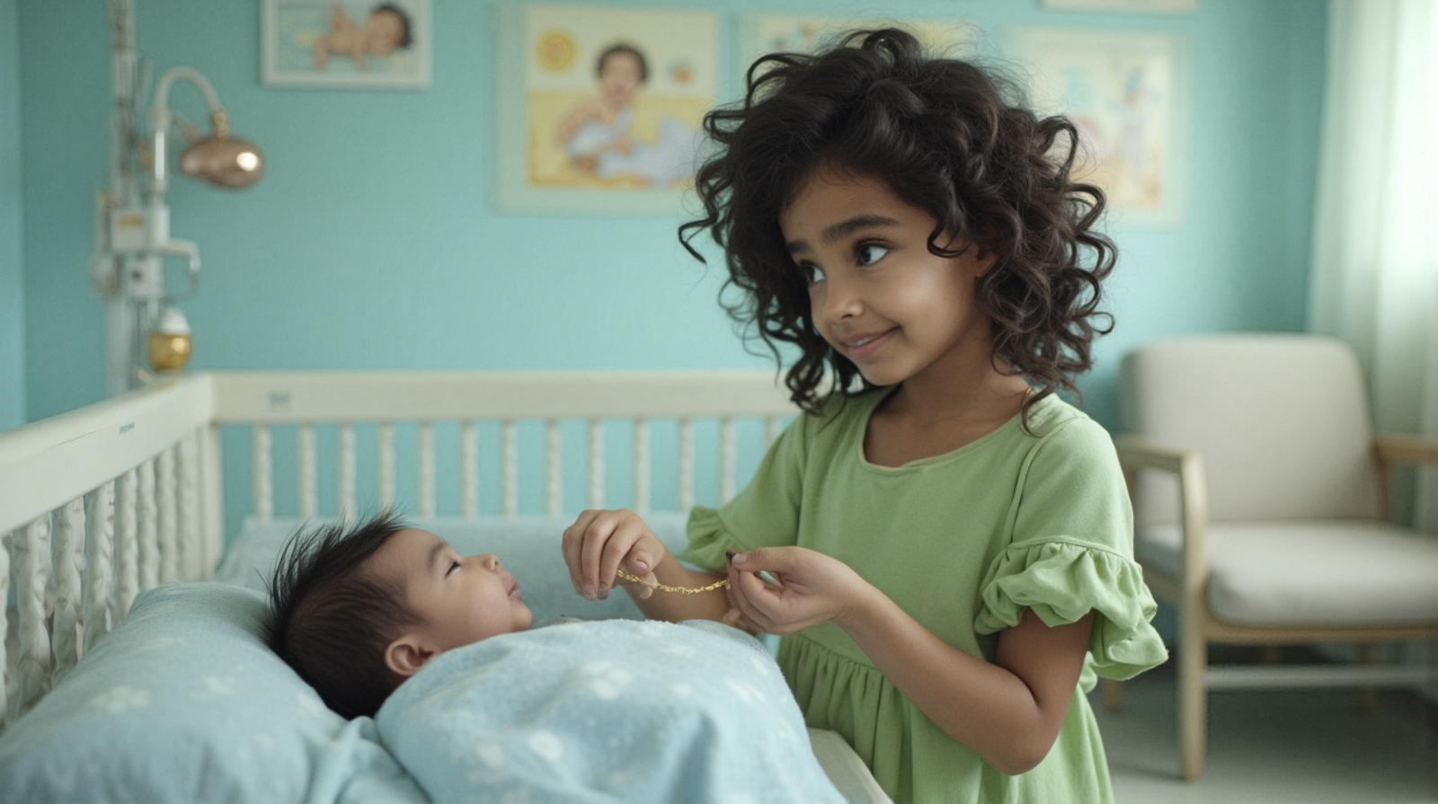 Inside her mother’s room, the air was warm and filled with voices—smiling relatives, soft laughter, and joy. Her grandmother, Pooraranamal, lifted Rositta gently to see the tiny baby sleeping in a crib.